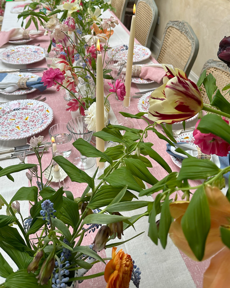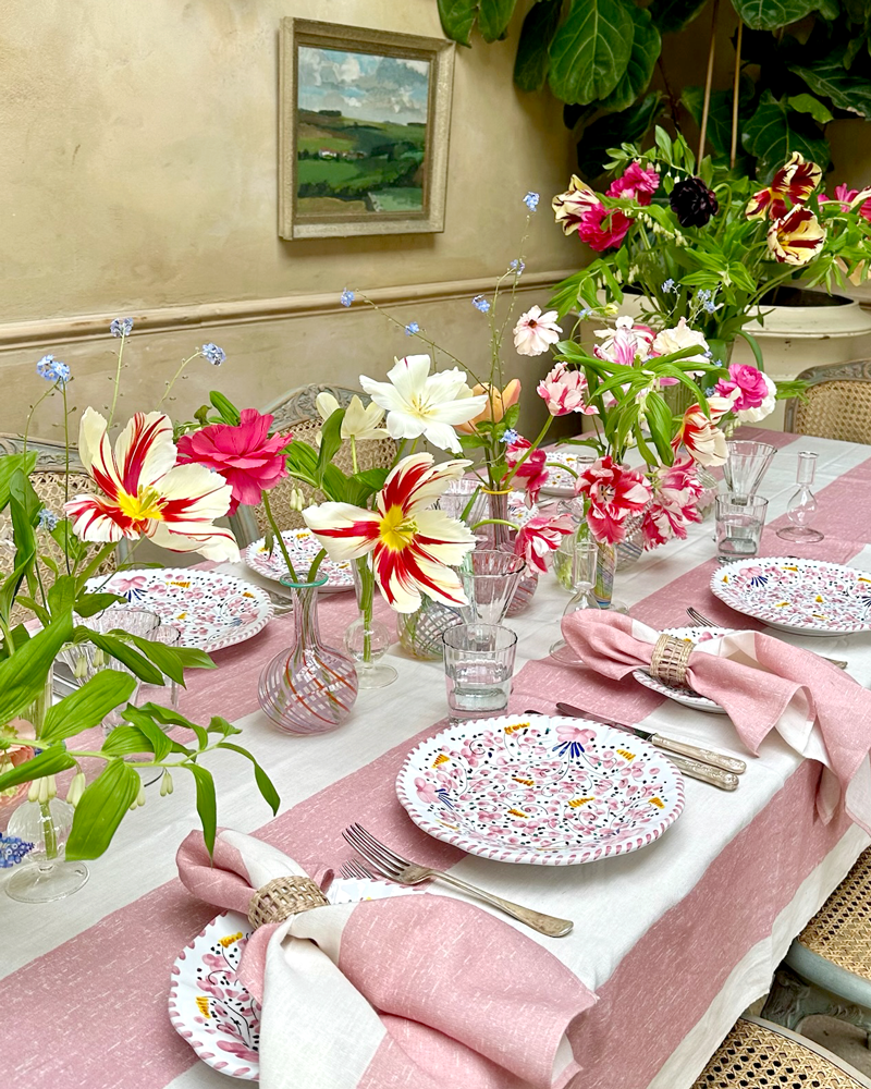 Dimensions: 170cm width x 300cm length 71% linen, 29% sustainable Tencel lyocell To maintain the longevity of the pattern and colours, please wash separately using a suitably gentle detergent on a delicate cold wash (30°C or below). These linens are produced with care in small batches and slight variations in colour & tone may occur.